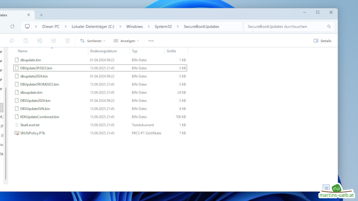 Meine Windows Geräte haben die Zertifikate bereits vor Monaten über Windows Updates erhalten und befinden sich bereits in folgendem Ordner: C:\Windows\System32\SecureBootUpdates